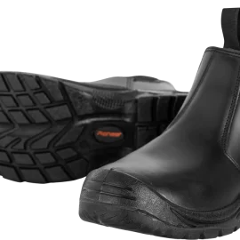 The REBEL Anvil Chelsea Boot is a hard-wearing chelsea boot designed for general applications. It features a high-quality full-grain leather upper with an anti-scuff toe guard and a reflective strip for added visibility. The boot is equipped with a 200J steel toe cap for impact protection. The dual-density polyurethane (PU) sole provides excellent slip resistance and heat resistance up to 90°C on contact. It is available in black and brown colour and comes in sizes ranging from 3 to 13 (UK). They are ISO 20345 and NRCS approved.